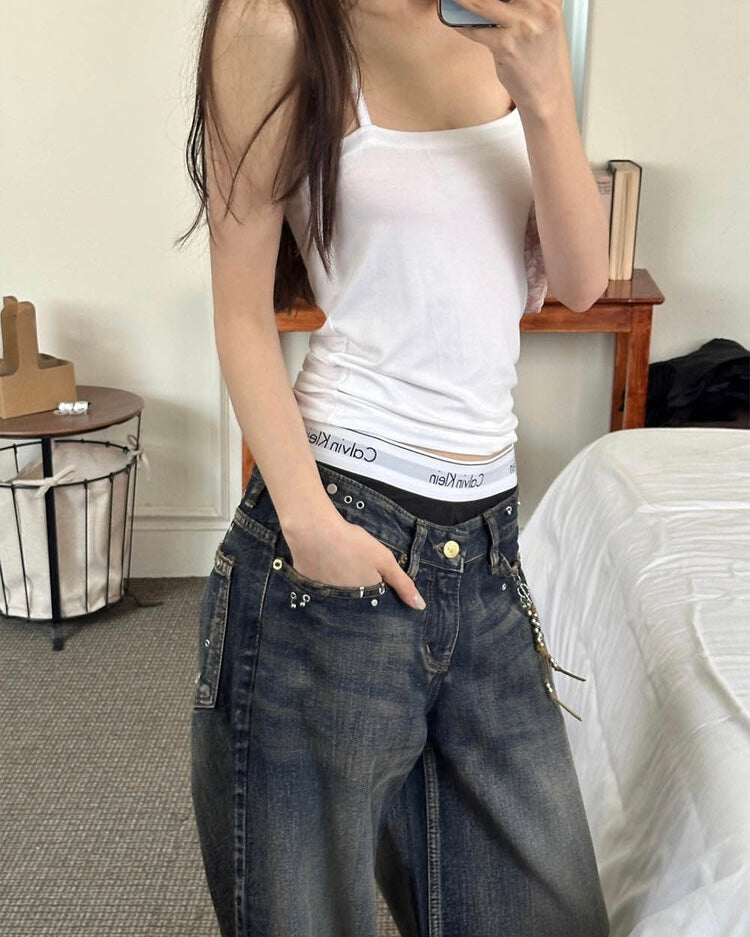 ๐ its giving statement jean thats wearable daily - ่ฅฏๆbasicๅ white tankๅๅพ ็งๅฌๅ ๅ็จฎknitๅhoodie้ฝๅฅฝๅฑ่ฅฏ