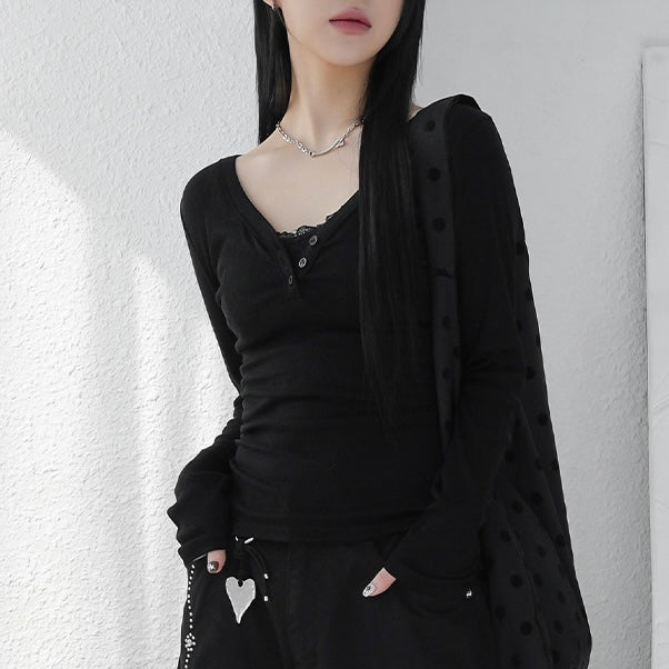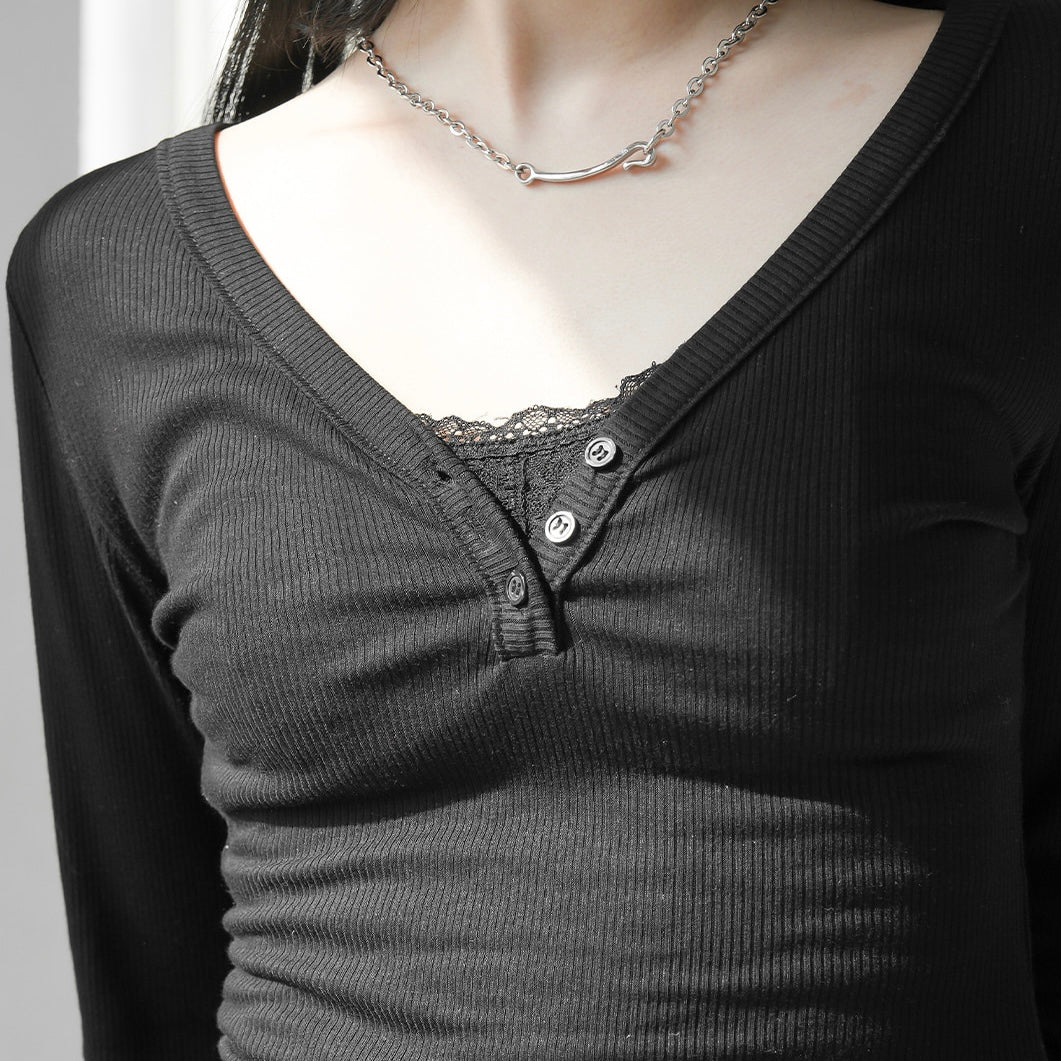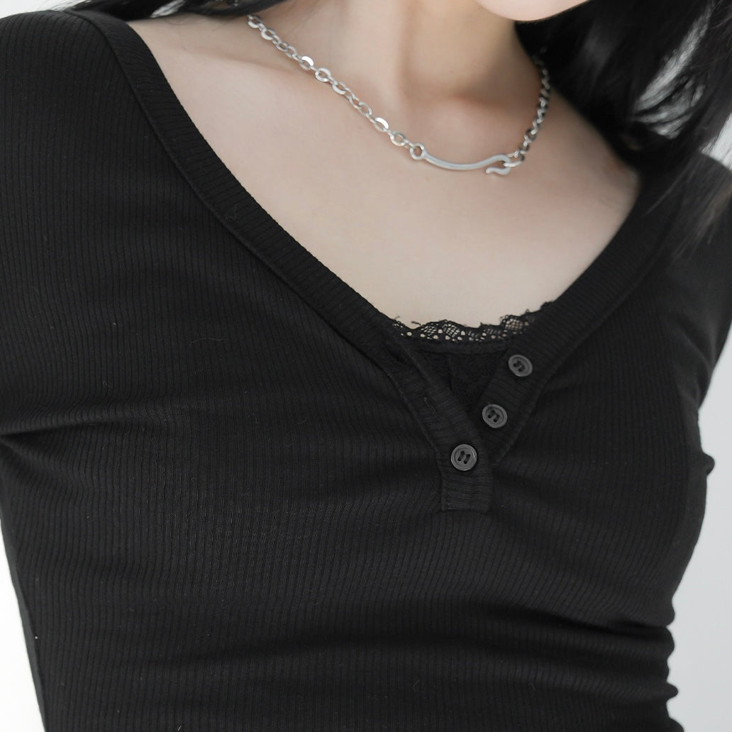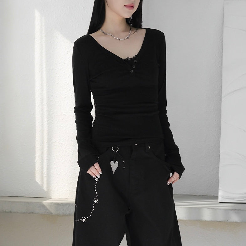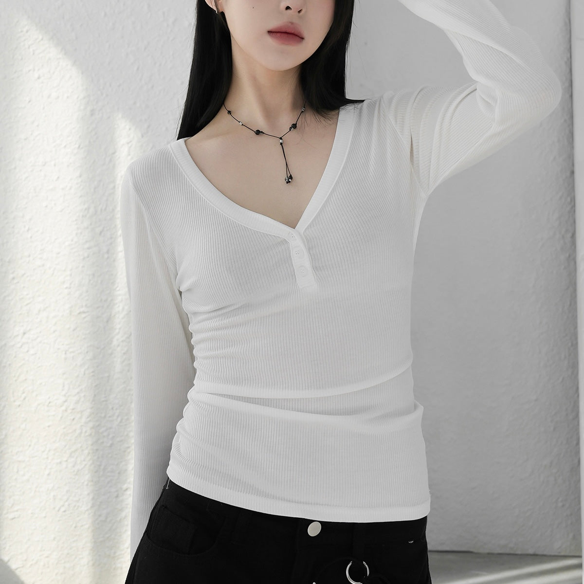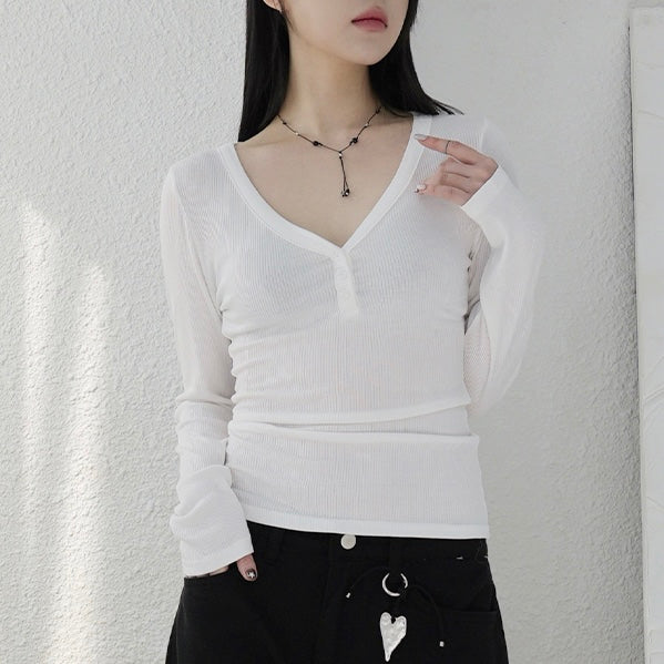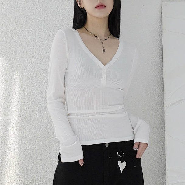 - ๆฏ่ผcasualๅ v neck long sleeve