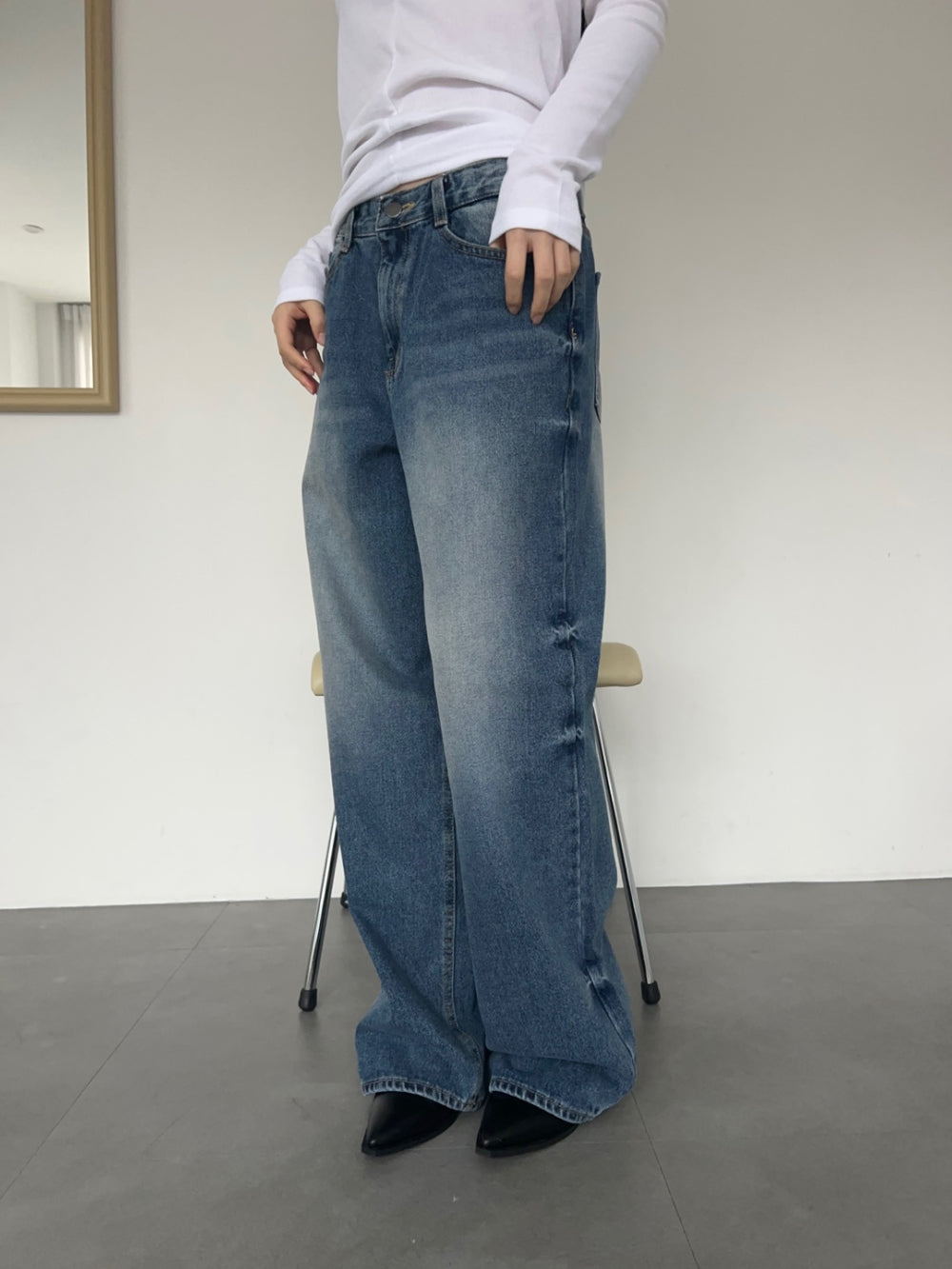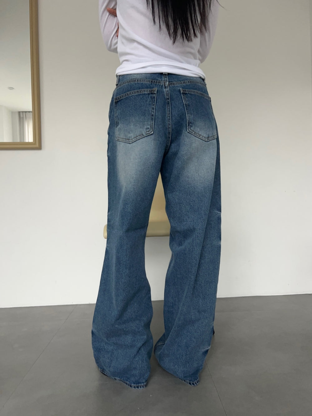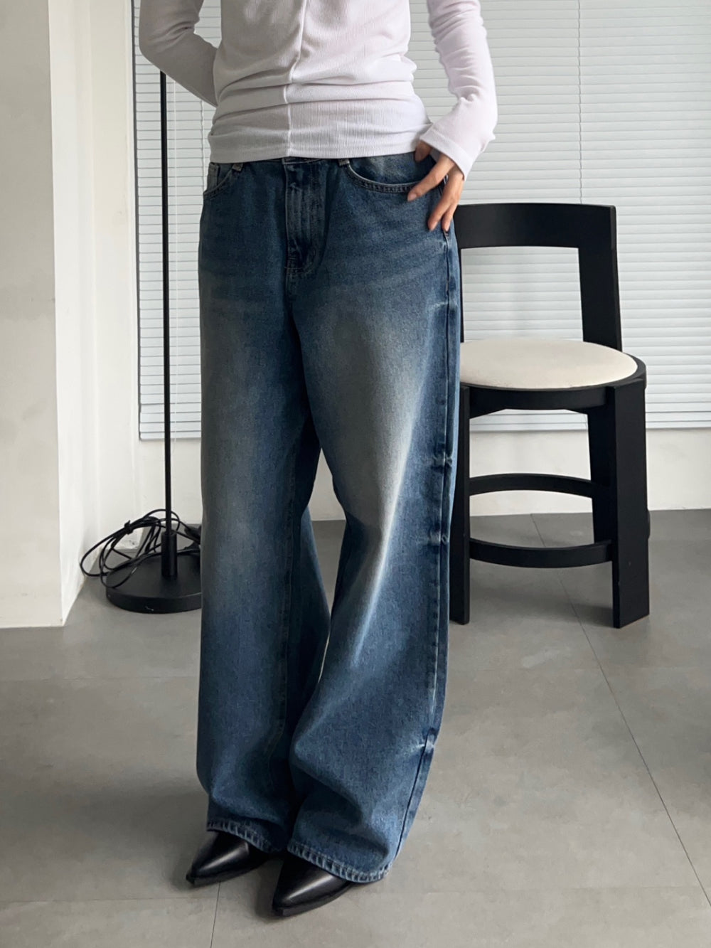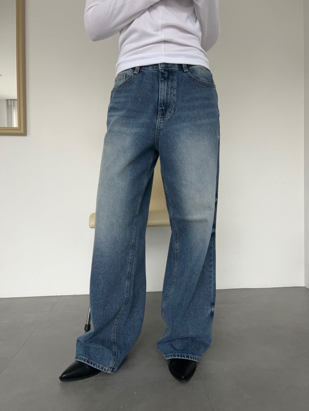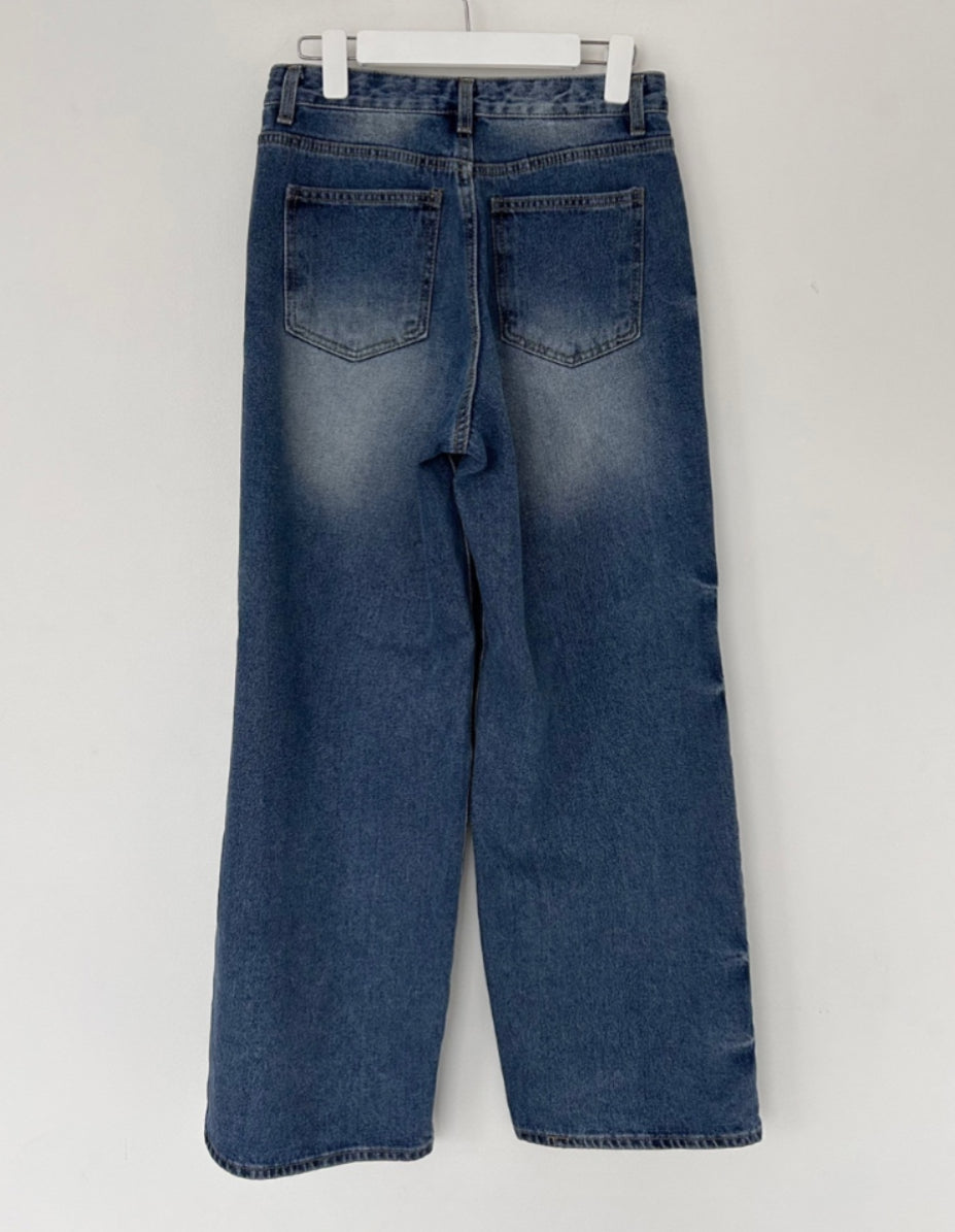 - relaxed wide leg cut with a straight silhouetteย