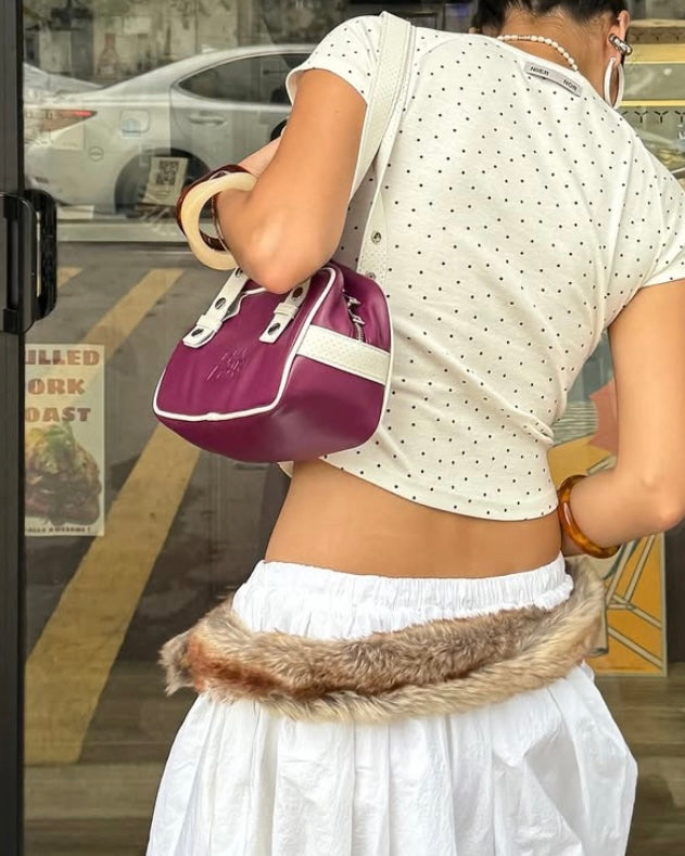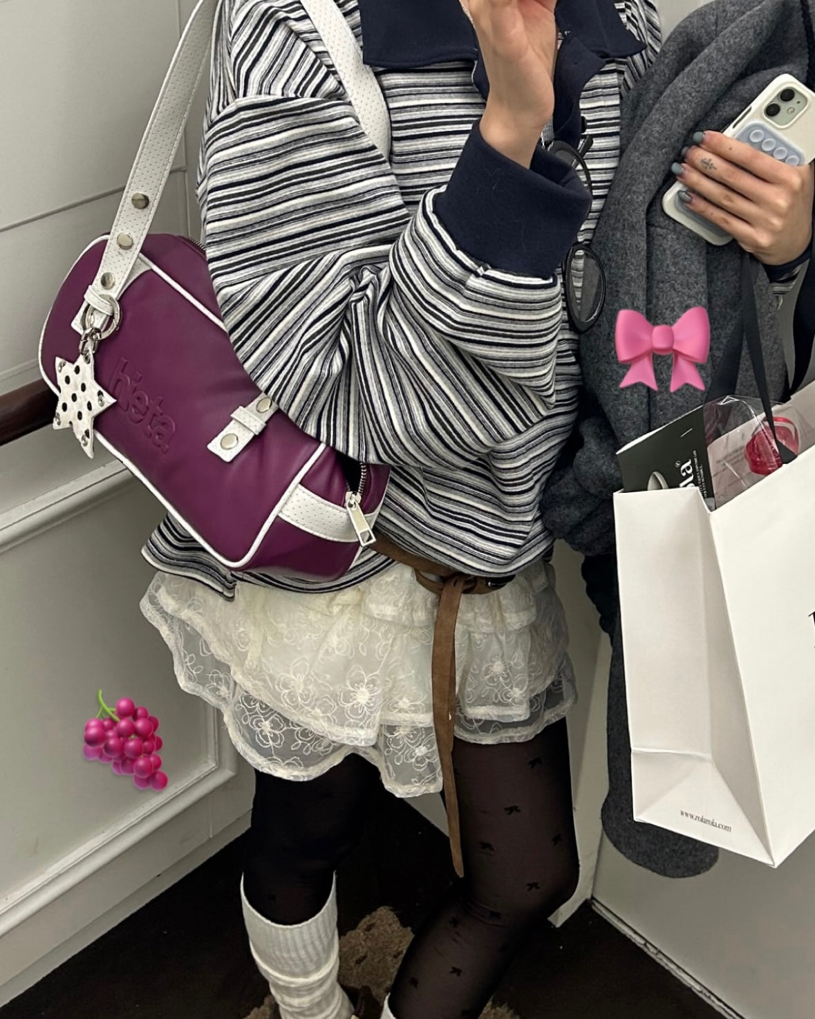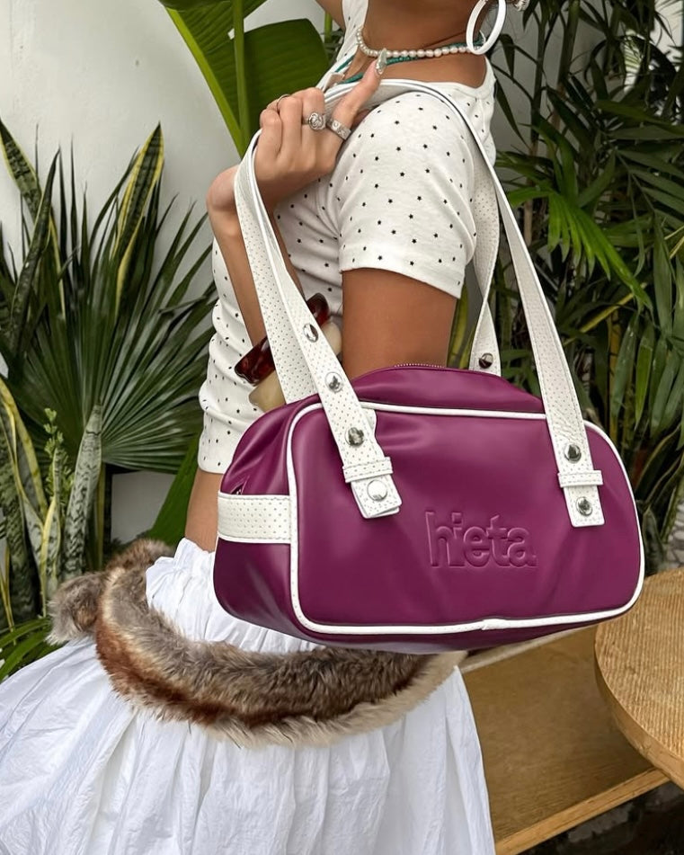 ๐ itโs a vegan leather shoulder bag crafted by Hieta in a vibrant grape purple!! reminds me of grape gummies and the recognisable grape flavouring in sweets and drinksย