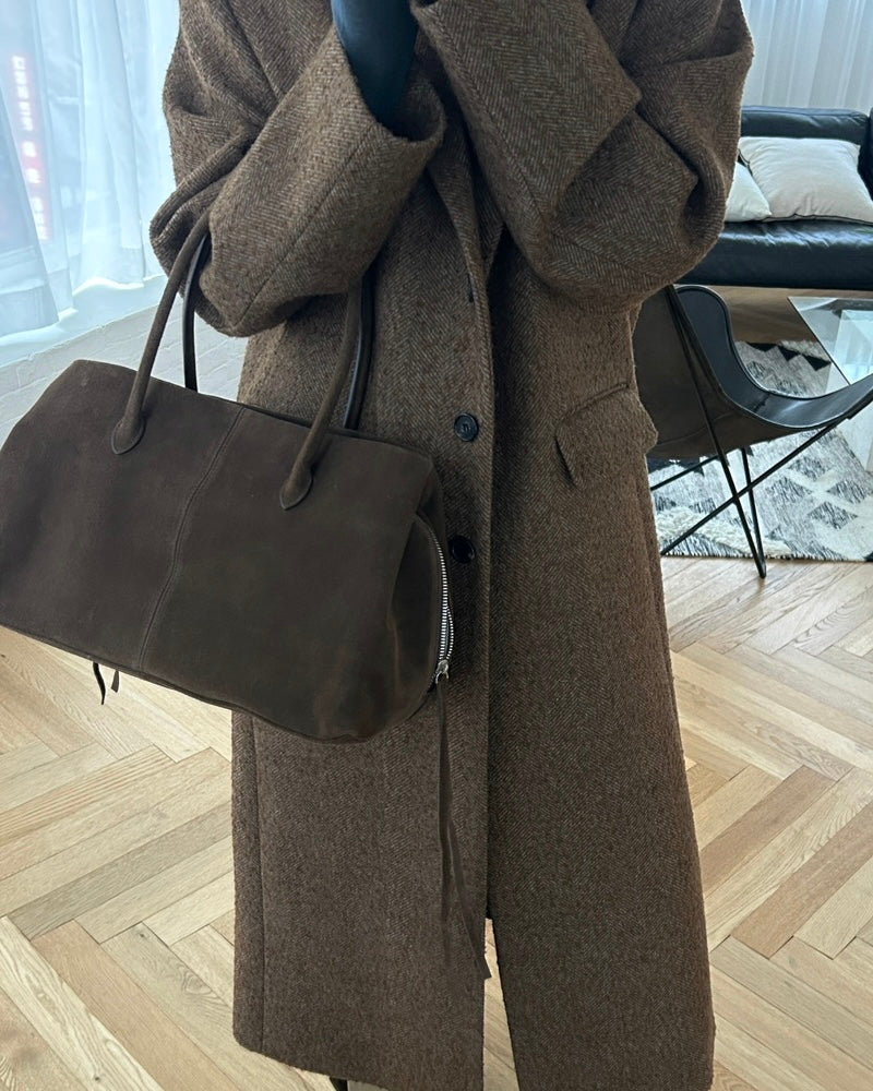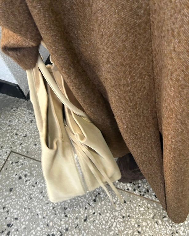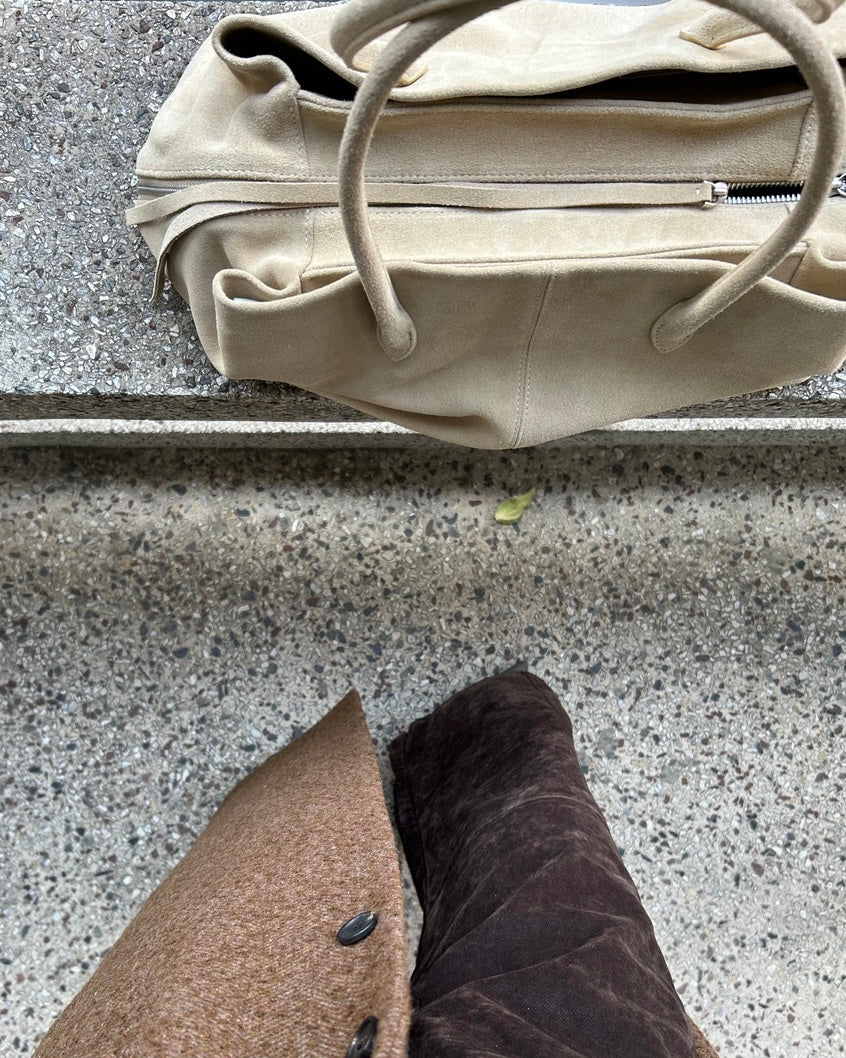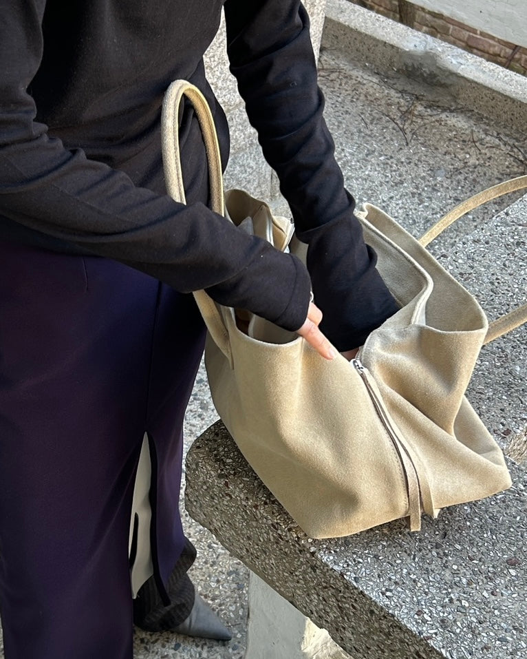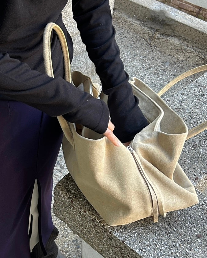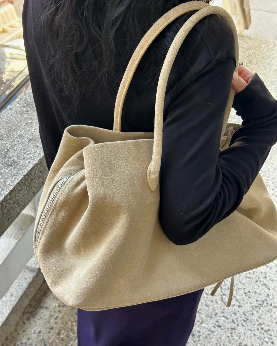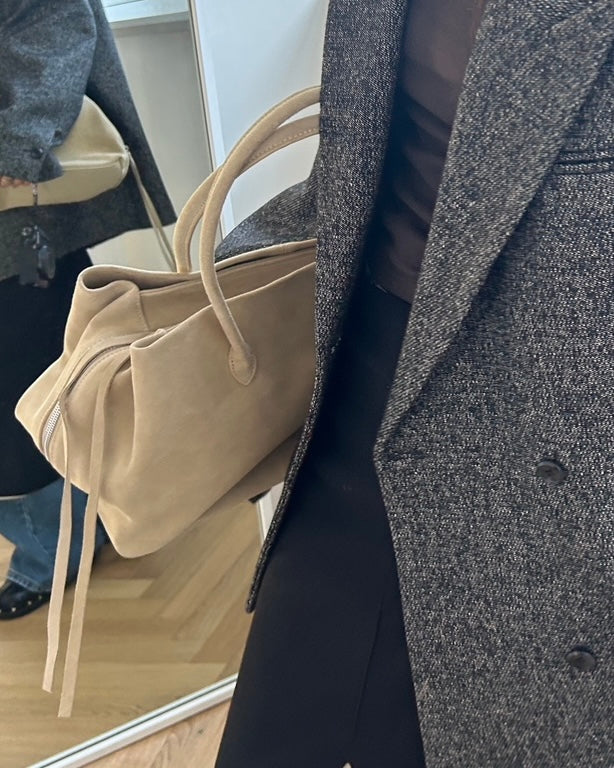 ๐ the shade of this real leather suede? the way itโs like almond butter coloured itโs so cute why have i not seen more of this colour on bags? anyways look no further here it is one click away babe