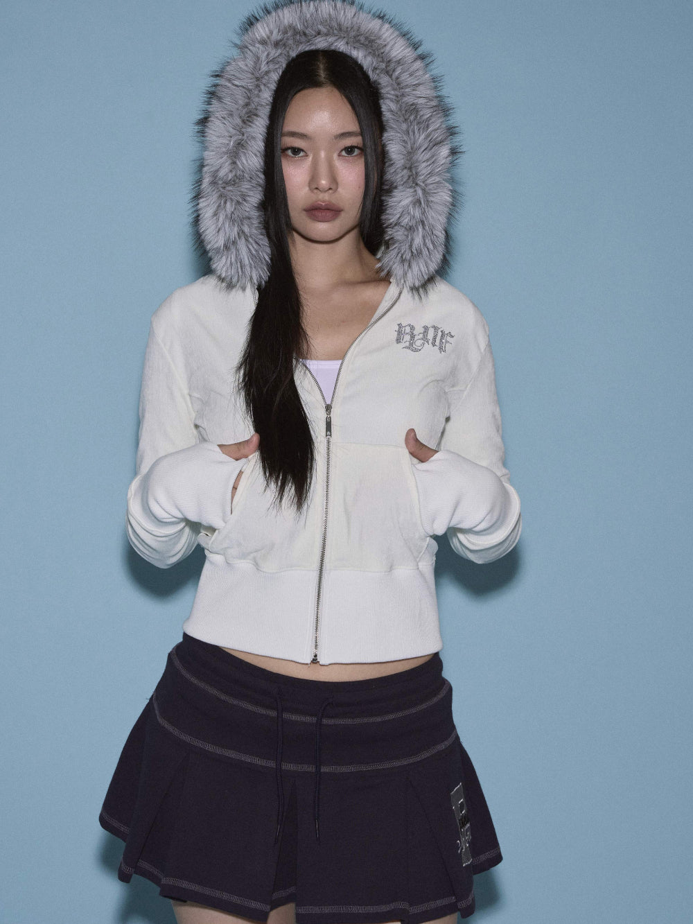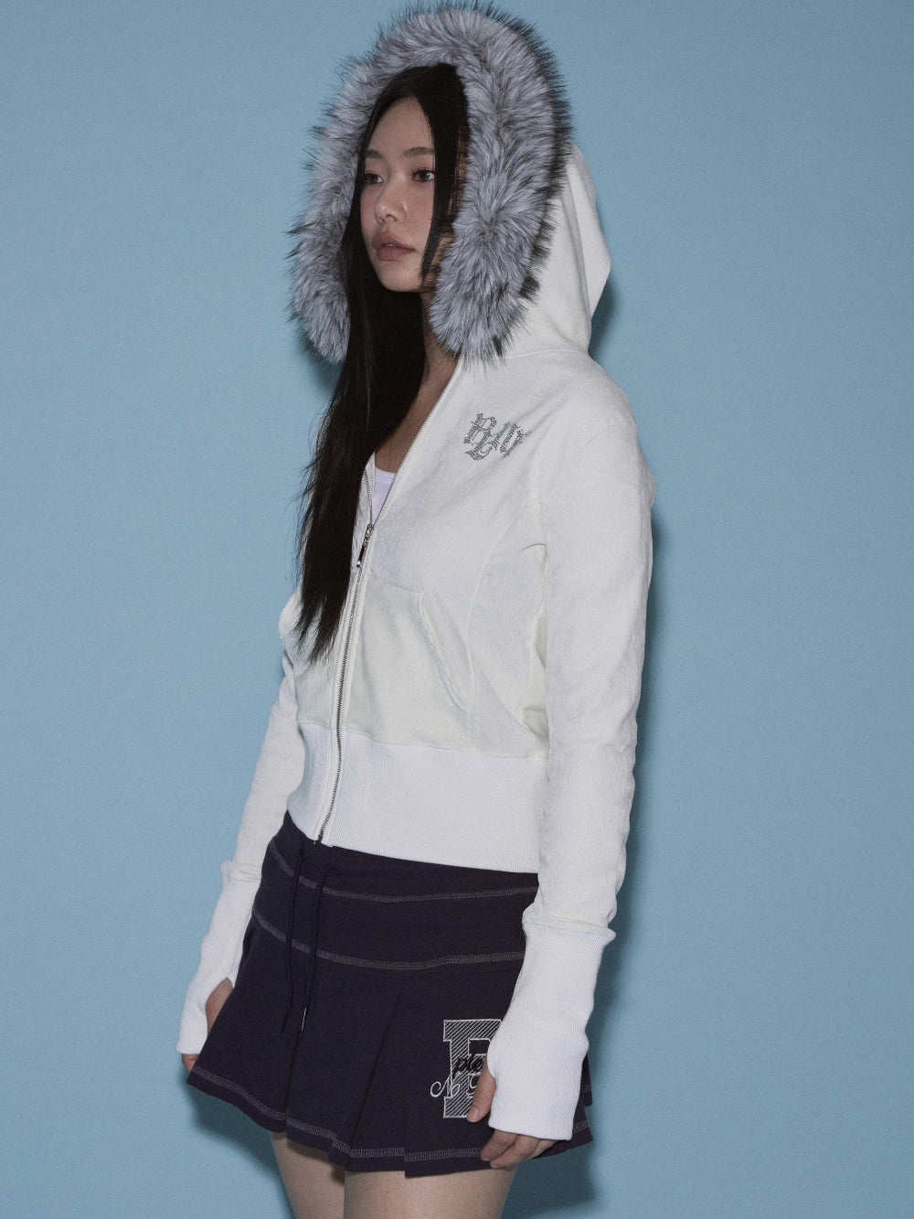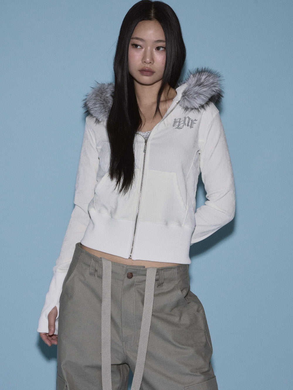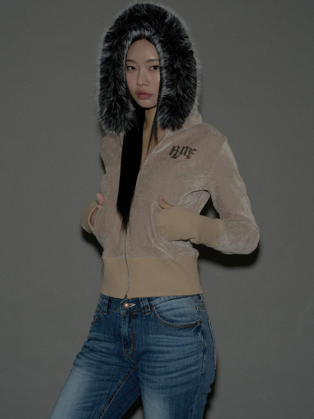 Free: Shoulder 40 / Chest 46.5 / Armhole 19 / Sleeve Length 67.5 / Sleeve Length 9.5 / Bottom Hem 38.5 / Total Length (ex. hood) 50.5