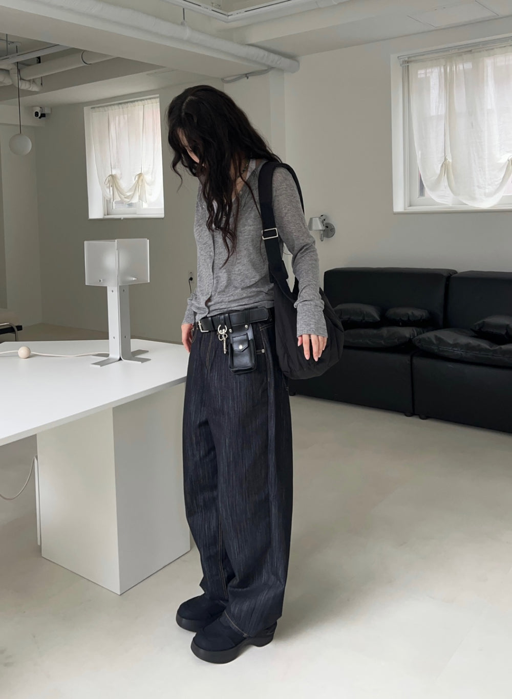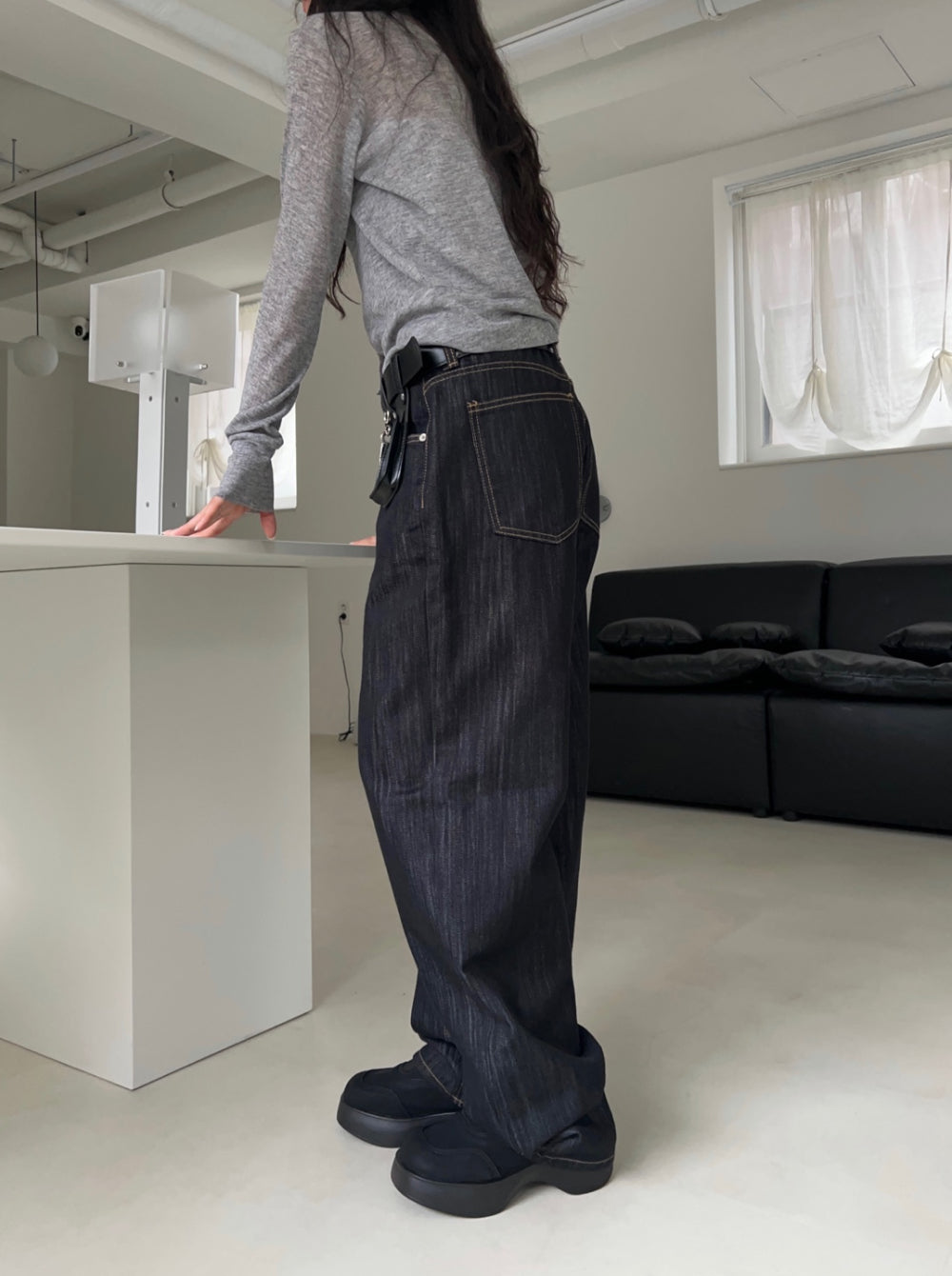 - ็ด่บซ้่ ณ, straight fit with full length wide leg, falls clean all the way down from the hip